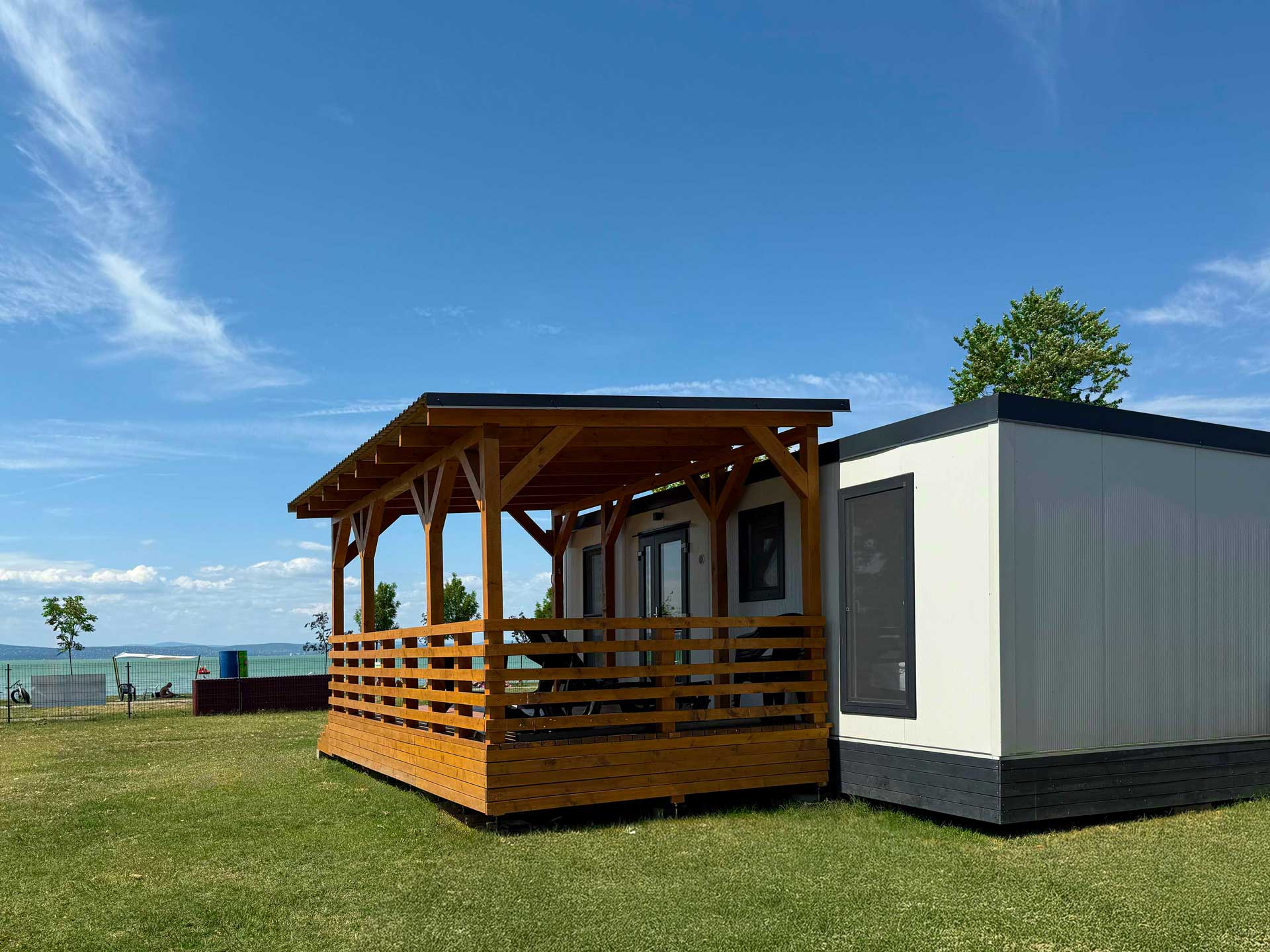 A Beach House Apartman az Aranypart Camping & Apartments legújabb, prémium kategóriás szállástípusa. Vadonatúj mobilházunk a Balaton-part közvetlen közelében helyezkedik el, így a vendégek minden este páratlan naplementében gyönyörködhetnek – saját teraszukról, kényelmesen, egy pohár borral a kézben. Az apartman Siófok egyik legkedveltebb üdülőövezetében, a természet közelségében várja vendégeit. Ha számodra fontos a modern kényelem, ugyanakkor szereted a szabadságot és az önállóságot, ez a balatoni apartman tökéletes választás családoknak, barátoknak vagy romantikus pároknak is.