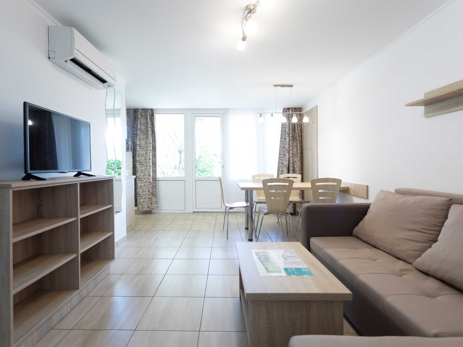 A Carmen Plus apartmanjaink minden évszakban komfortosak, hiszen klímával felszereltek, amely hűtésre és fűtésre is alkalmas. Így tavasszal és ősszel is kellemes hőmérséklet biztosított a belső terekben.
