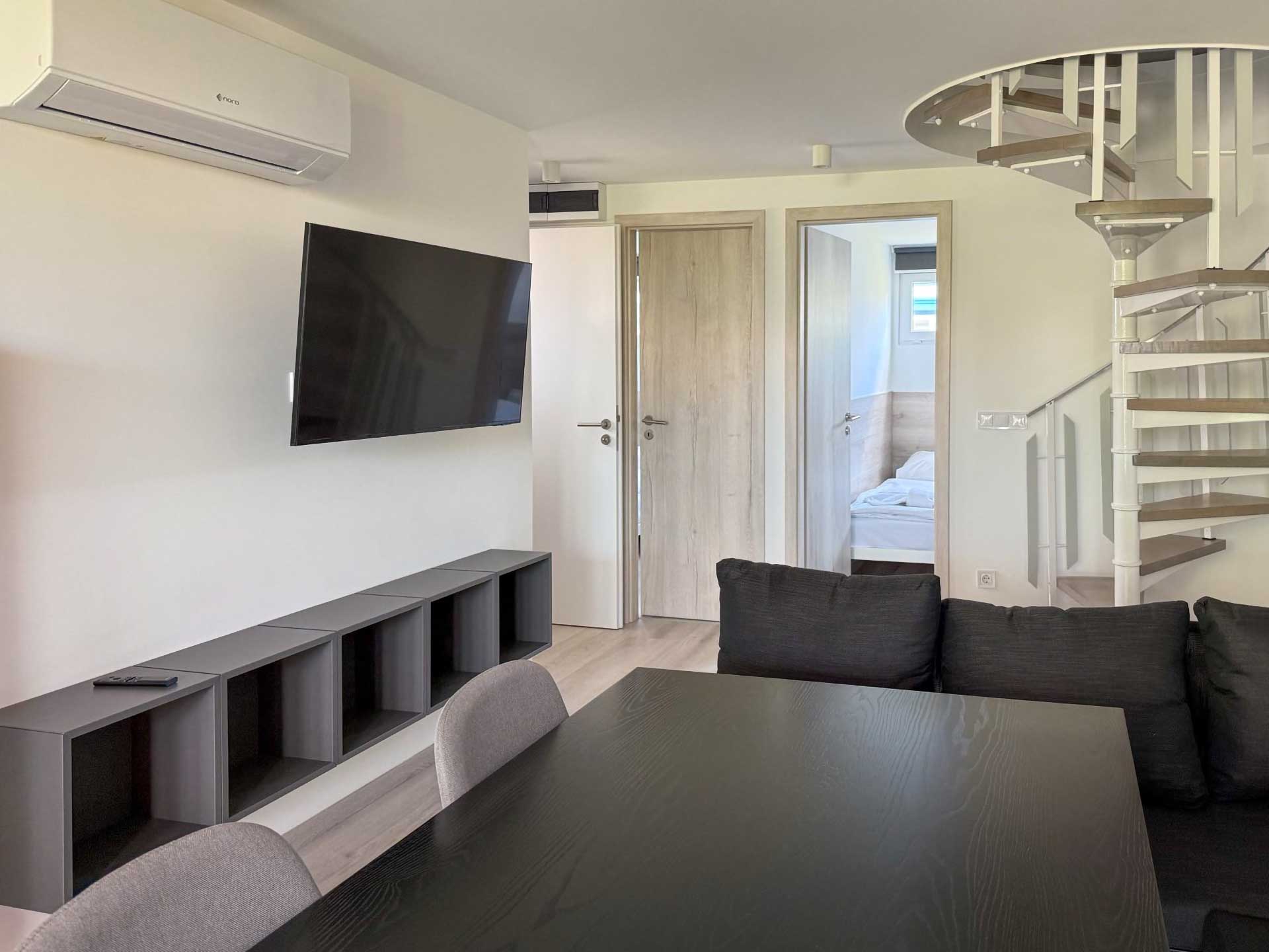 Apartmanjaink síkképernyős TV-vel felszereltek. Egy tartalmas nap után jól esik bekuckózni és megnézni egy kedvenc műsort.